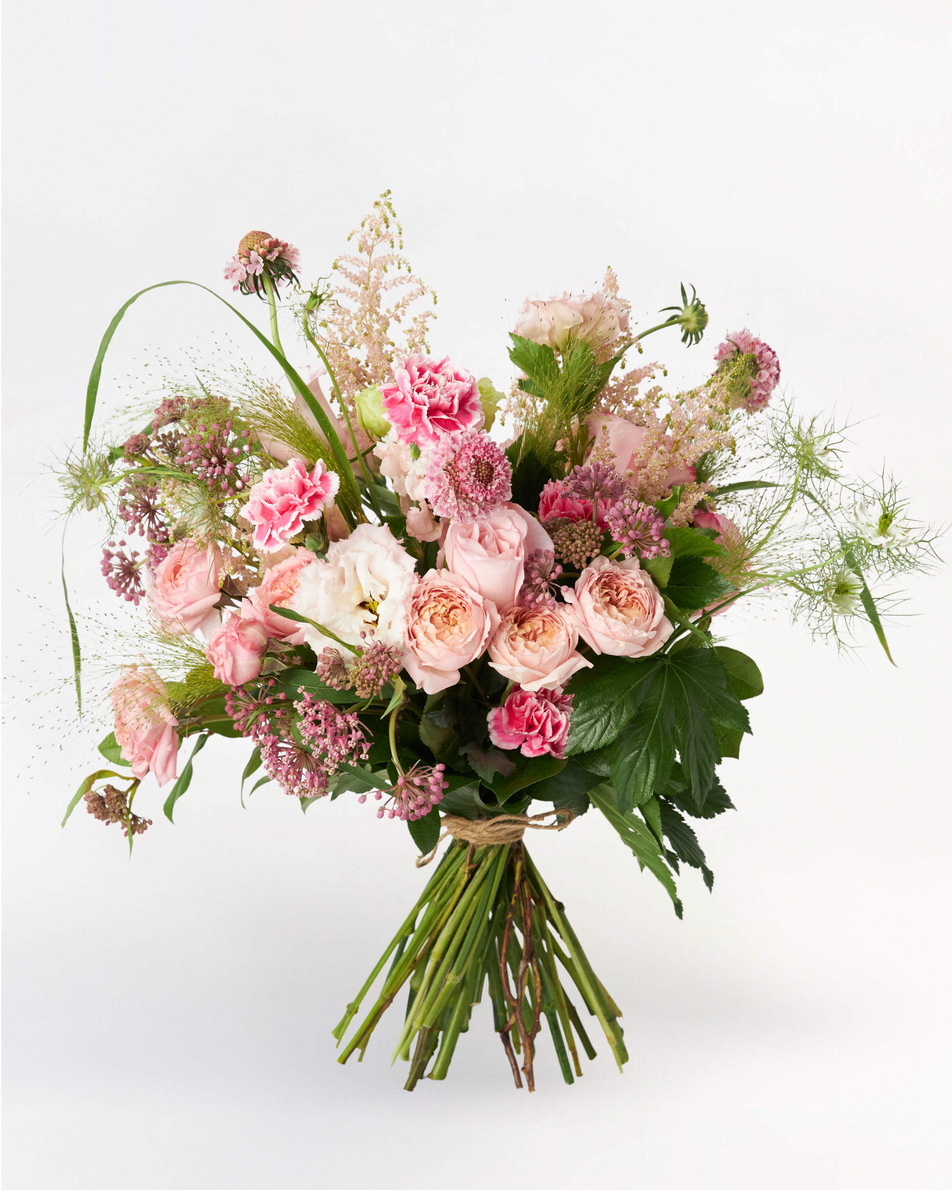 Bursting with elegance and natural beauty, the exquisite Carnation Bliss showcases a captivating blend of roses, bio color carnations, astilbe, asclepias, eustoma, and scabiosa. Accented with assorted greenery, it is a stunning arrangement that exudes charm and grace.